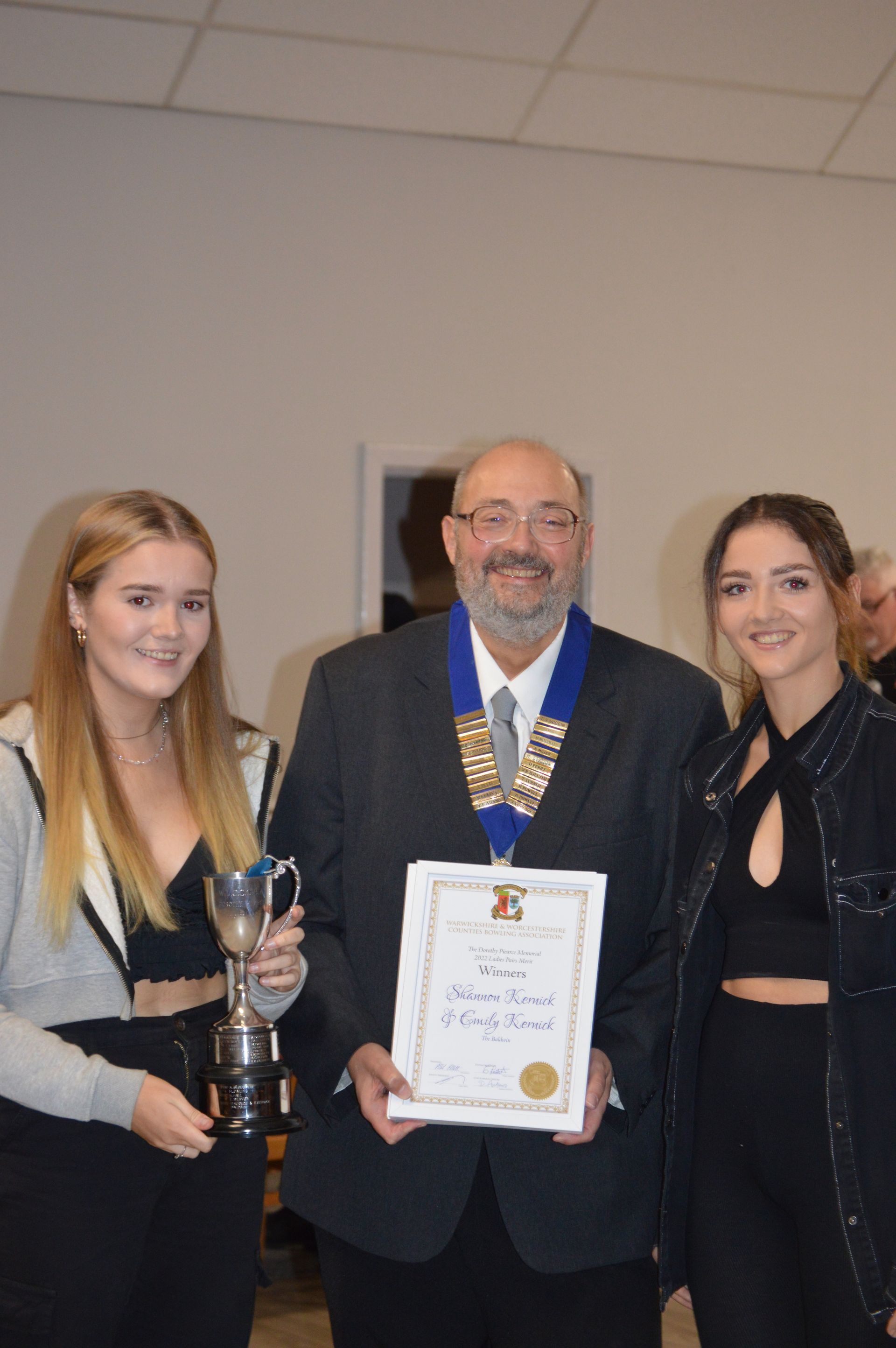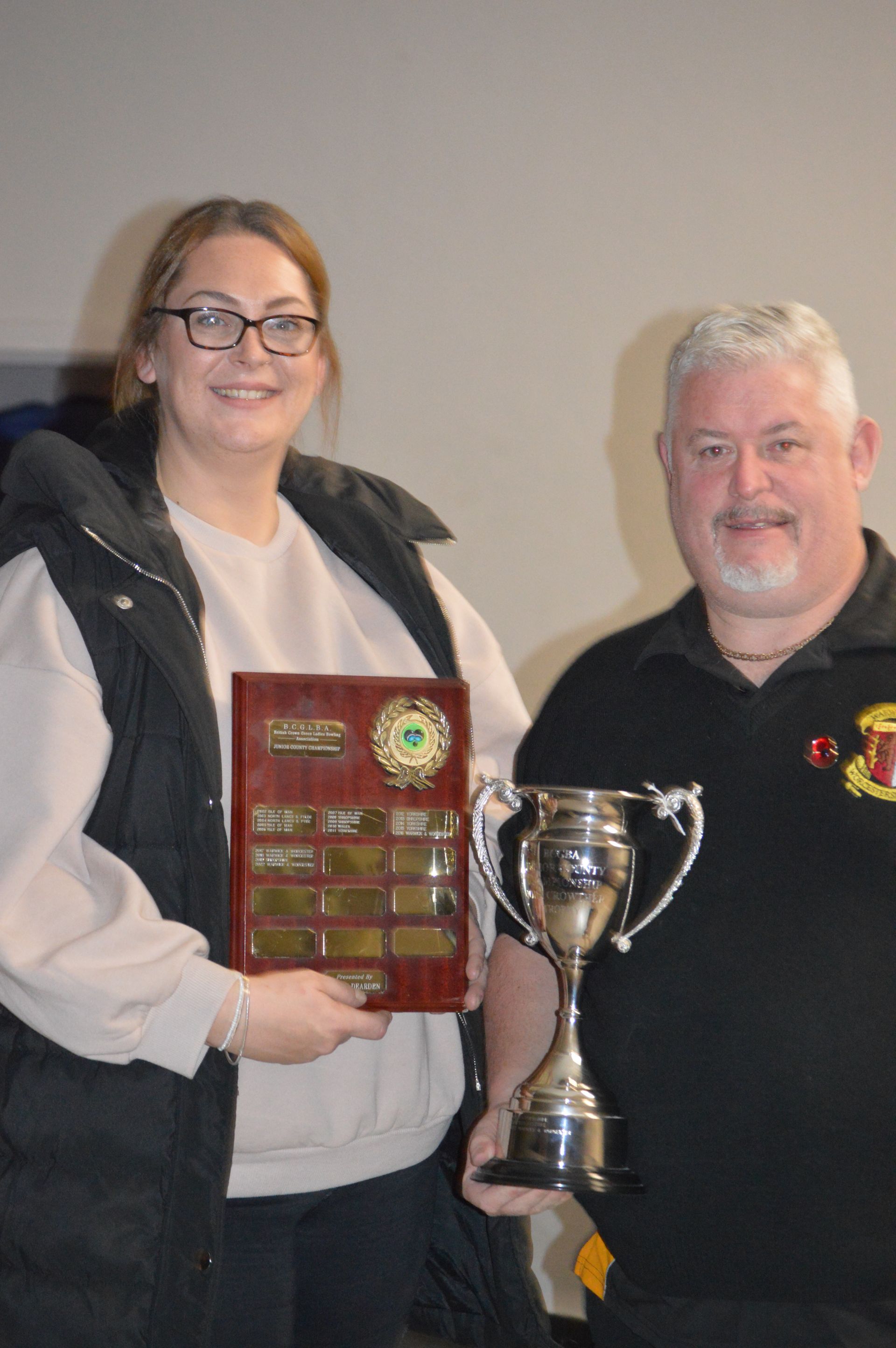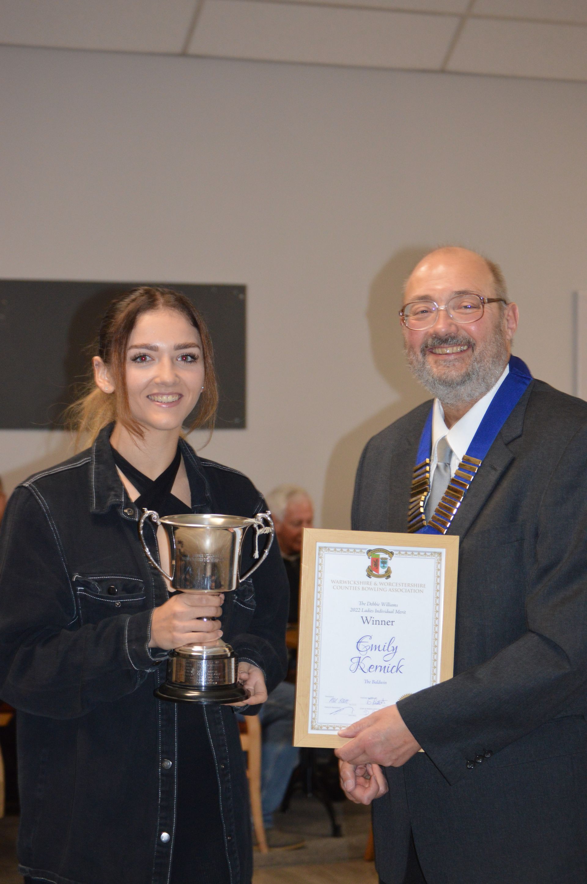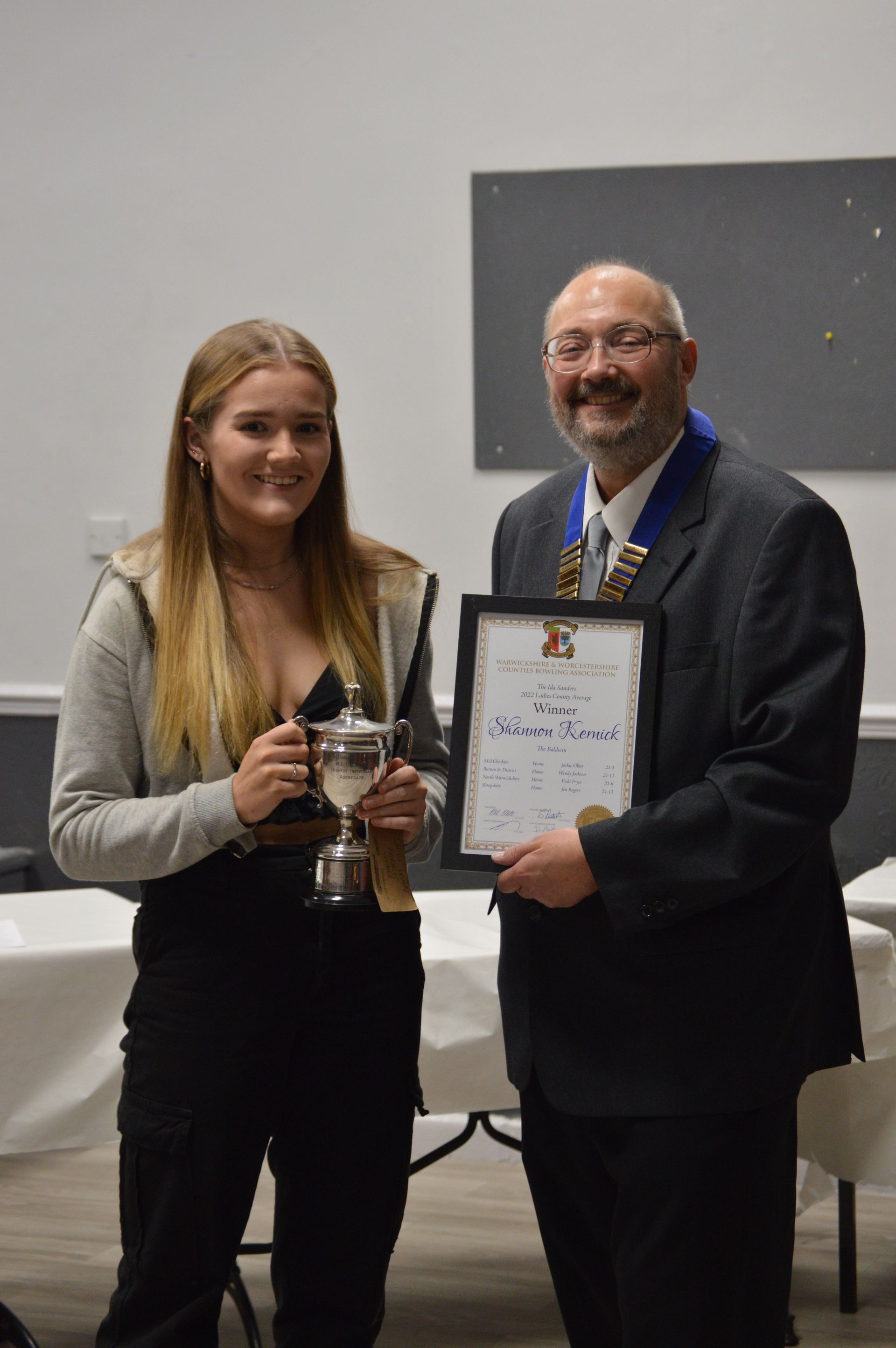 Collecting her Mixed Pairs Winners Certificate for the 2021 Season. Emily paired with Ryan Prosser.