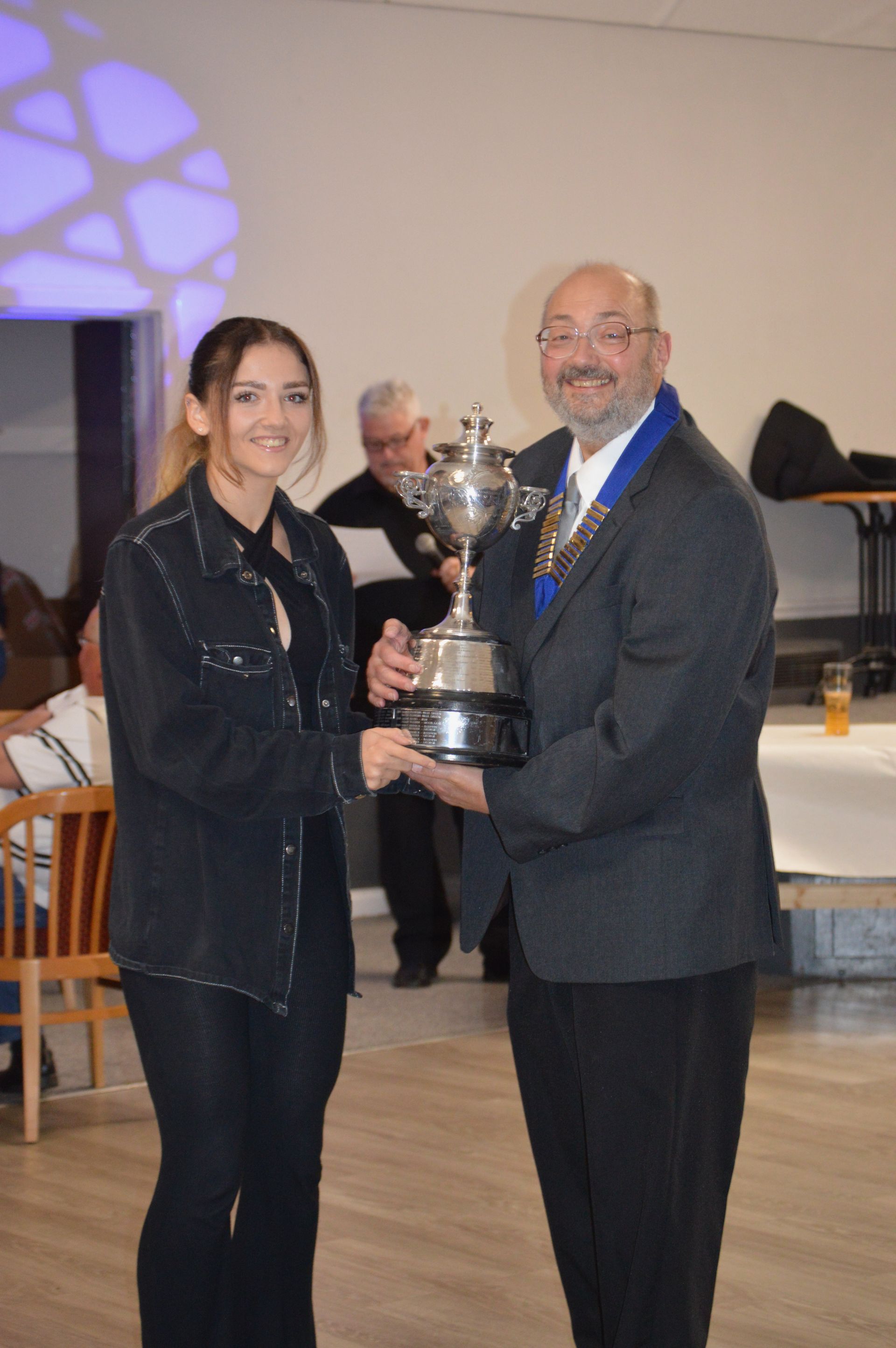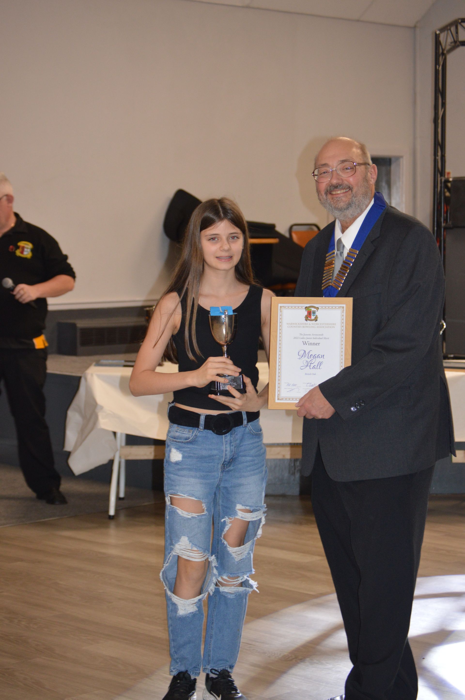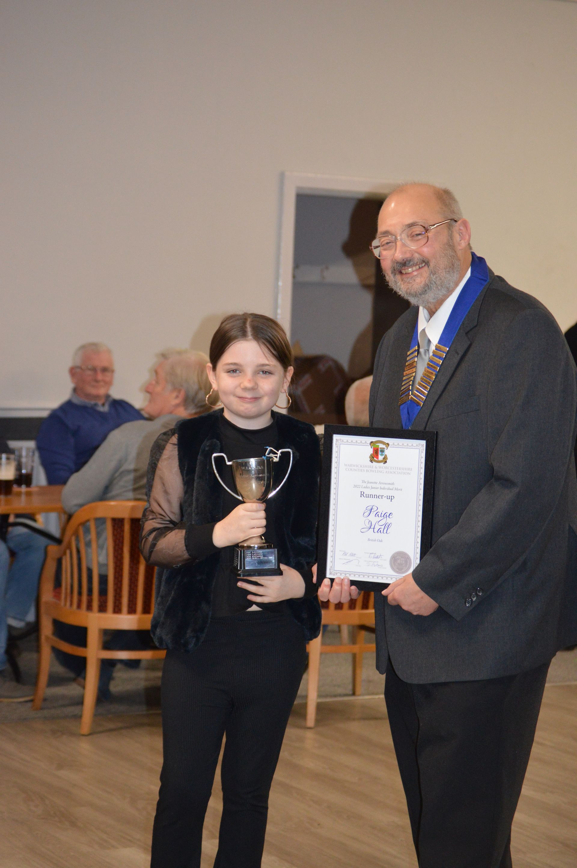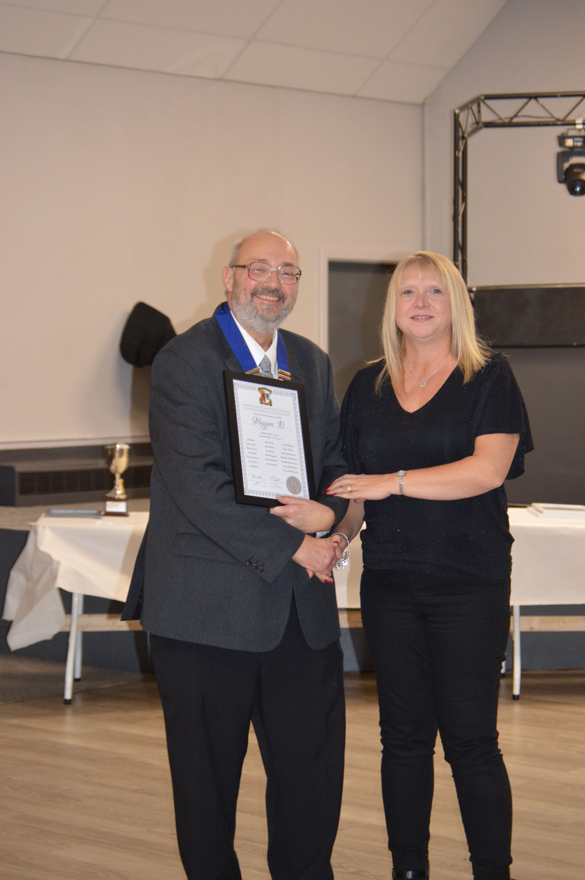 Collecting her Mixed Pairs Winners Certificate for the 2021 Season. Emily paired with Ryan Prosser.