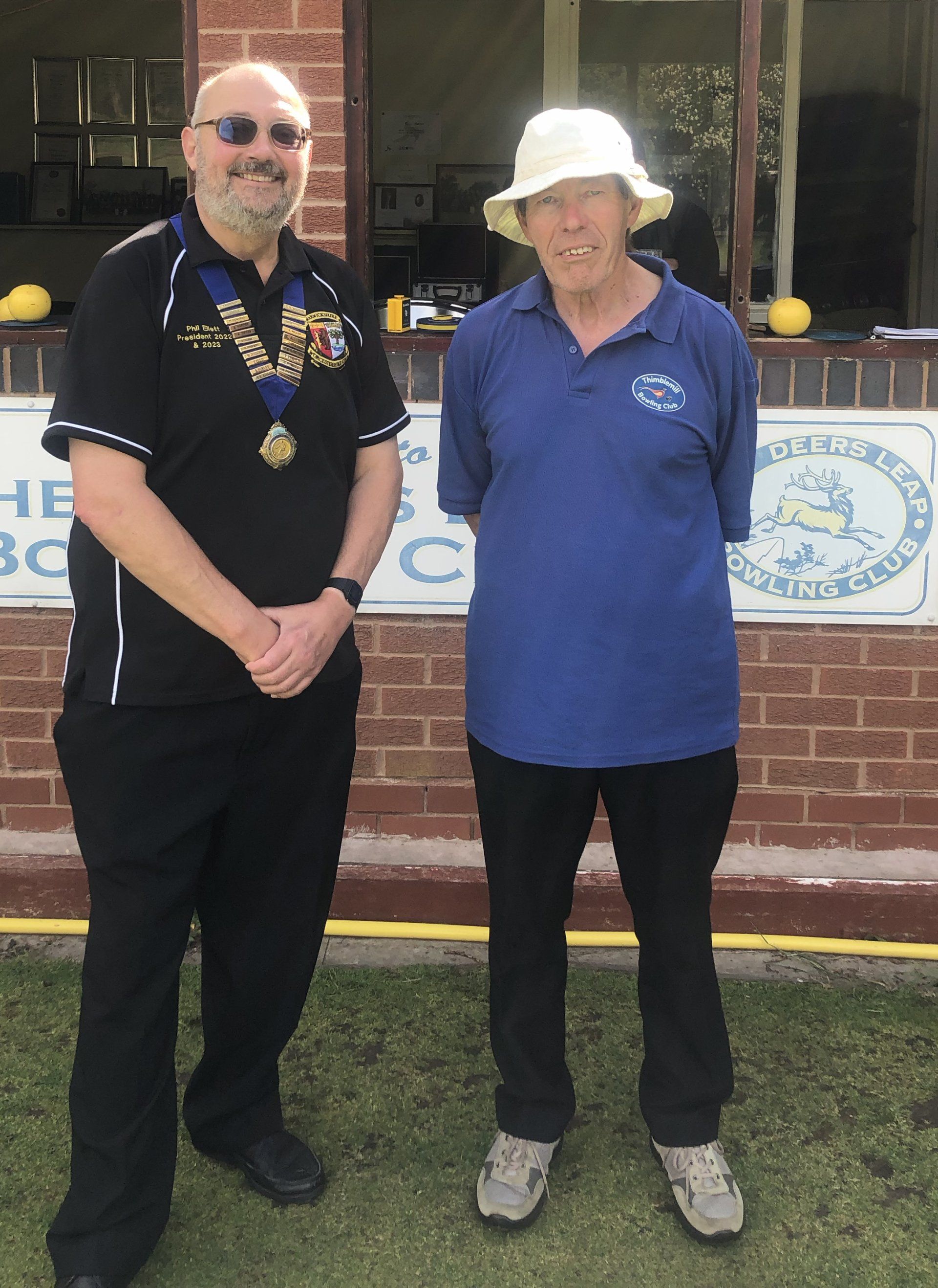 Congratulations to Mark "Giggsy" Street who beat Allan Hemming 21-5 in the final, in the first of our county Merit competitions, the W&W Veterans Merit which was held at the Deers Leap on Thursday 19 May.